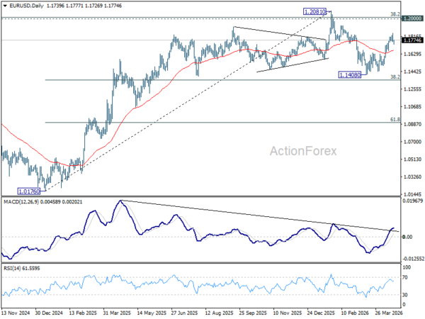 Daily Pivots: (S1) 1.1733; (P) 1.1792; (R1) 1.1823; More….