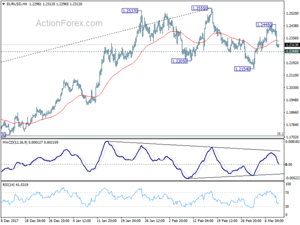 EUR/USD dropped sharply from 1.2445 but it’s staying above 1.2268 minor support so far. Intraday bias remains neutral first. On the downside, break of 1.2268 will argue that fall from 1.2555 is likely resuming. And intraday bias will be turned back to the downside for 1.2154 support and below. ON the upside, above 1.24455 will turn bias to the upside for retesting 1.2555 key resistance.