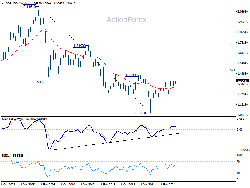In the bigger picture, price actions from 1.3787 (2025 high) are seen as a correction to the larger up trend from 1.3051 (2022 low). That might have completed at 1.3008 already. Firm break of 1.3787 will confirm up trend resumption. Next target is 1.4284 key resistance (2021 high). This will remain the favored case as long as 1.3008 support holds.