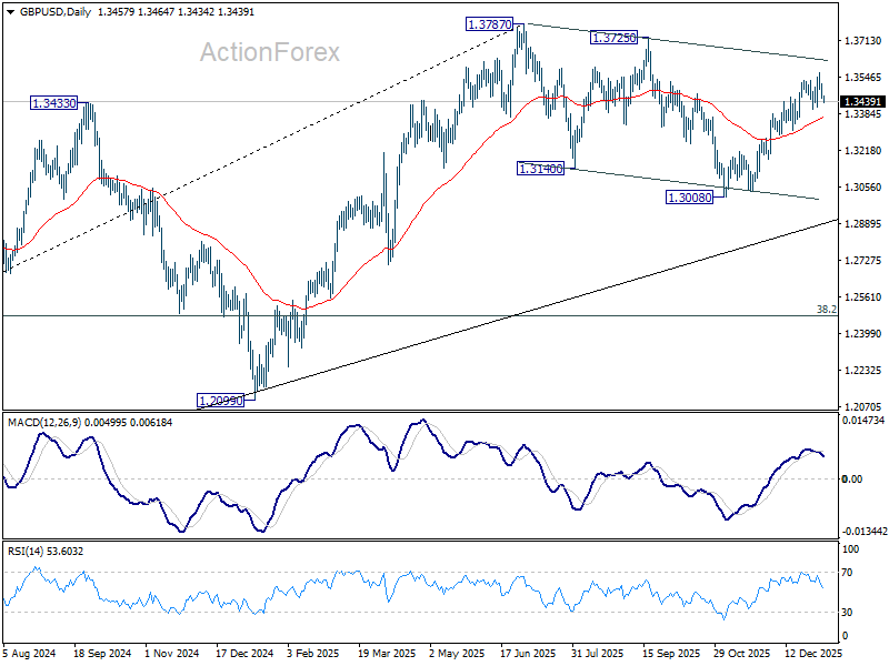 Daily Pivots: (S1) 1.3436; (P) 1.3477; (R1) 1.3497; More…