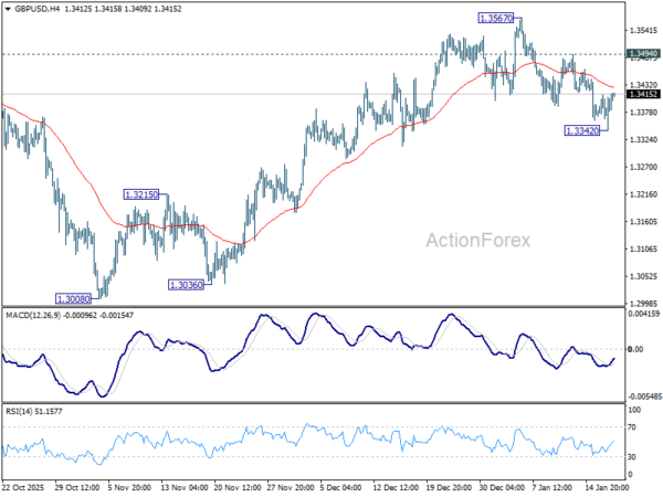 Intraday bias in GBP/USD is turned neutral with current recovery, but risk stays on the downside with 1.3494 resistance intact. On the downside, sustained trading below 55 D EMA (now at 1.3375) will argue that the decline is another falling leg in the corrective pattern from 1.3787. In this case, deeper fall should be seen back to 1.3008 support. However, break of 1.3494 will bring stronger rally back to 1.3567.