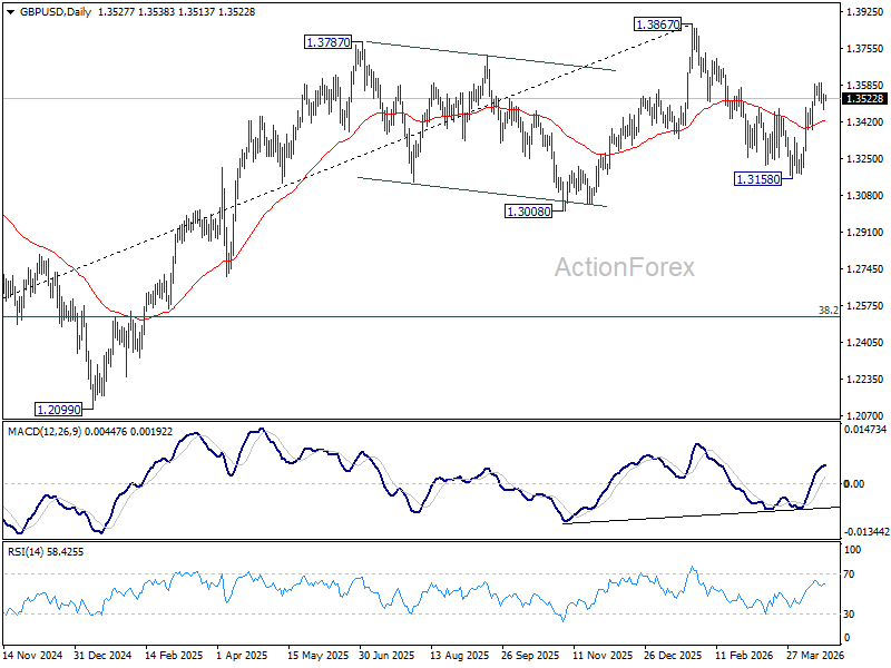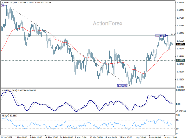 Daily Pivots: (S1) 1.3492; (P) 1.3519; (R1) 1.3562; More…