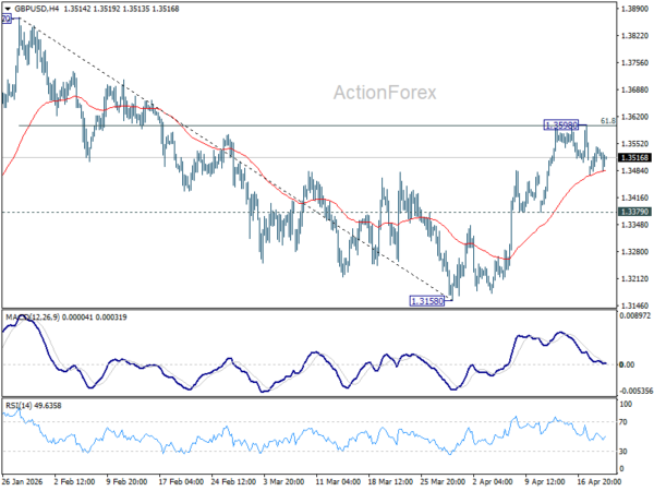 Daily Pivots: (S1) 1.3492; (P) 1.3519; (R1) 1.3562; More…