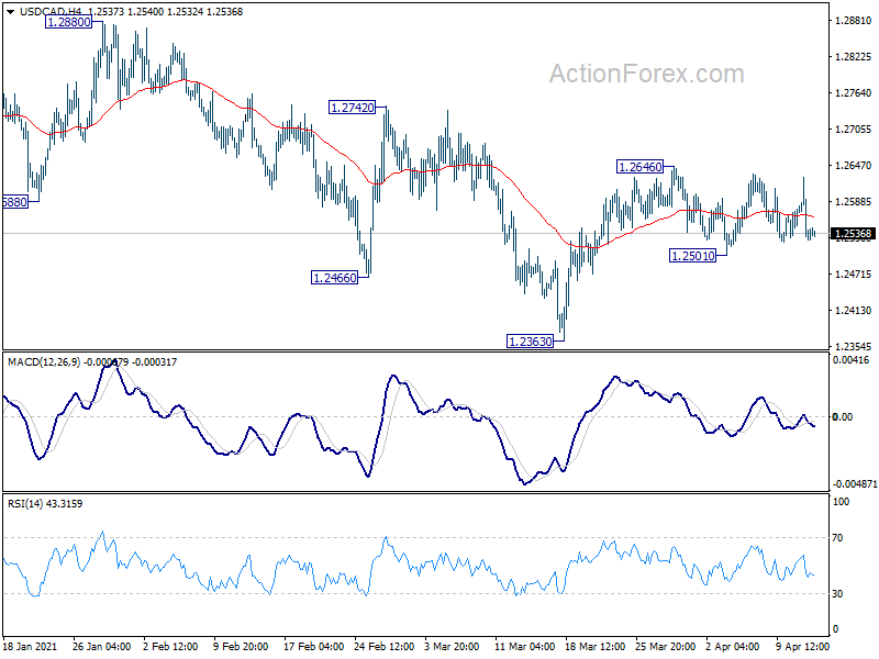 Intraday bias in USD/CAD remains neutral and outlook is unchanged. On the upside, break of 1.2363. But overall outlook will stay bearish as long as 1.2742 resistance holds, and eventual downside breakout is expected. On the downside, break of 1.2501 minor support will bring retest of 1.2363 low first.