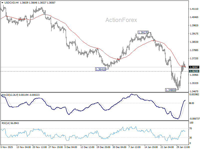 Daily Pivots: (S1) 1.3623; (P) 1.3663; (R1) 1.3721; More…
