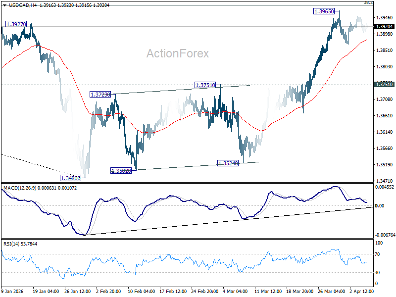 Daily Pivots: (S1) 1.3893; (P) 1.3921; (R1) 1.3940; More…