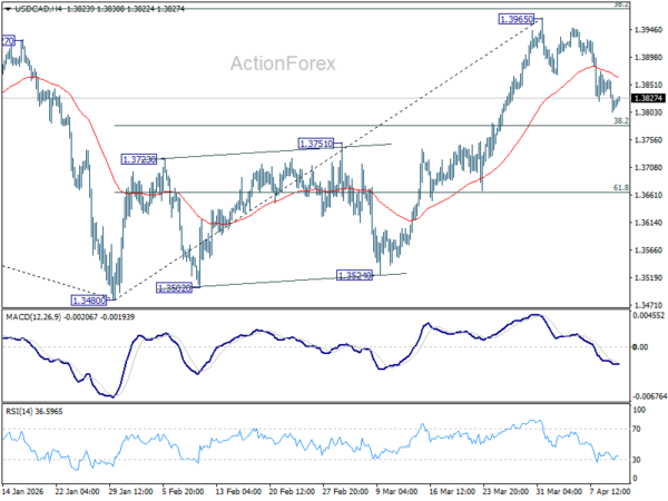 Daily Pivots: (S1) 1.3793; (P) 1.3827; (R1) 1.3849; More…