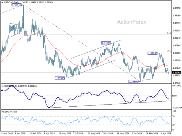 Daily Pivots: (S1) 1.3588; (P) 1.3636; (R1) 1.3674; More…