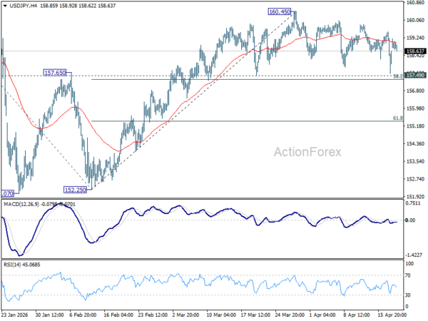 Daily Pivots: (S1) 157.63; (P) 158.58; (R1) 159.56; More…