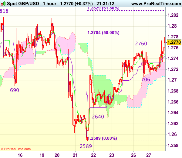 As cable has risen again after finding renewed buying interest at 1.2706, suggesting the erratic rise from 1.2589 low is still in progress and upside bias is seen for further gain to 1.2780-85 (50% Fibonacci retracement of 1.2978-1.2589), then towards resistance at 1.2818, however, break of latter level is needed to retain bullishness and extend the aforesaid rise to 1.2830 (approx. 61.8% Fibonacci retracement).